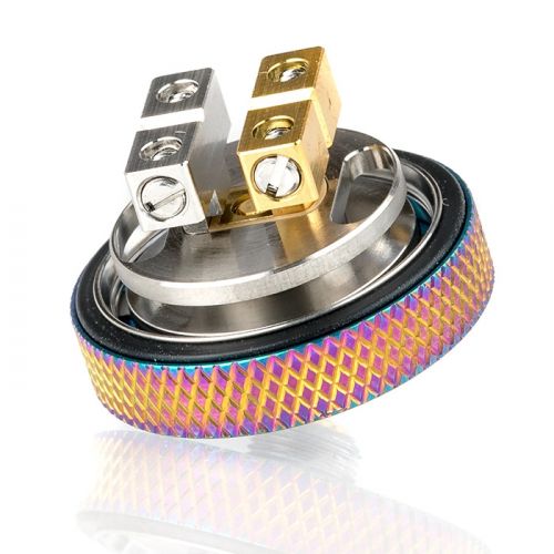 The HellVape Dead Rabbit 25mm RTA is the resulting brainchild between HellVape and Vapin' Heathen, presenting an impressive expandable juice capacity, a raised four-post build deck, and a top side adjustable airflow ring. The HellVape Dead Rabbit RTA utilizes a 4.5mL bubble glass to expand the standard 2.0mL ejuice capacity for longer vape sessions. The build deck is slightly reiterated from the previous Dead Rabbit atomizers, keeping the raised build deck to allow for extending coil leads to be snipped without painstaking measuring. Built for single or dual coil configurations, the Dead Rabbit RTA build deck has four posts with wide terminals to easily accept coils of any size, configuration, or thickness. The inner chamber has a funneled cap to concentrate and force the flavor from the coils to wash over the tastebuds. The top side airflow ring channels airflow from the top and vents it into the inner coil chamber to create an environment conducive to flavor and vapor.