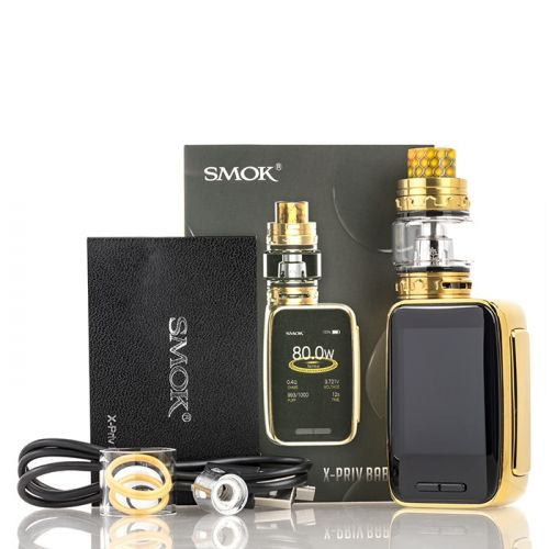 SMOK X-PRIV Baby 80W Starter Kit is the follow-up edition of the appraised X-PRIV, implementing a compact-sized device with the high-quality impression of the original to pair with the TFV12 Big Baby Prince Tank. Maintaining the crowning achievements of utilizing a large screen display, measuring an impressive 2.0 Inch High-Definition screen with full-color resolution. The X-PRIV Baby is equipped with a 2300mAh built-in battery, capable of firing up to 80W of maximum power and full temperature suite. Pairing with the device is the TFV12 Big Baby Prince Tank, implementing a maximum capacity of 6 milliliters, new button-lock hinged top-fill, smooth dual bottom airflow control, and the utilization of the TFV8 Baby Coil System.